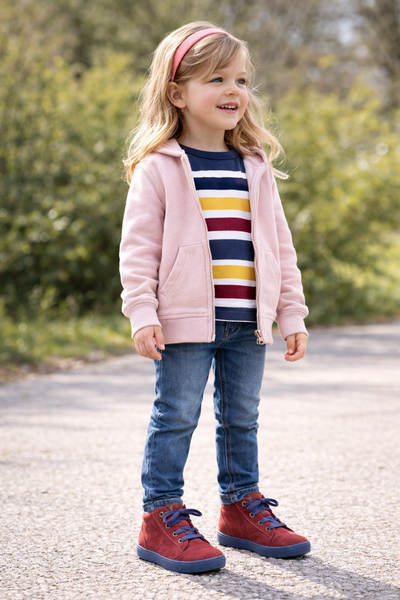 Czerwone trampki Emel łączą naturalne materiały, oddychającą membranę oraz elastyczną podeszwę, zapewniając komfort w codziennym użytkowaniu. Model odpowiedni zarówno dla chłopca, jak i dla dziewczynki.