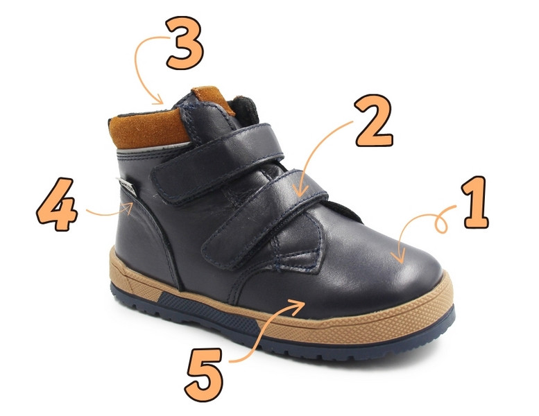 1. Naturalna skóra licowa - cholewka wykonana z wysokogatunkowej skóry, miękkiej i przyjaznej dla dziecięcej skóry