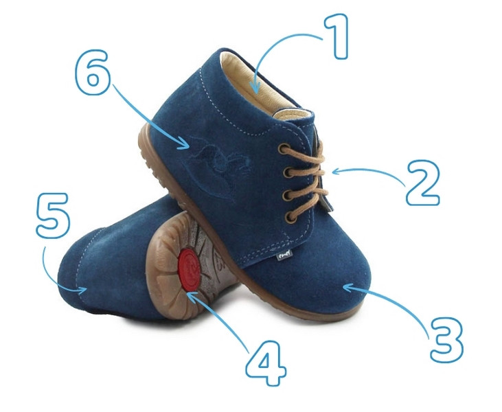 5. Usztywniony zapiętek - wzmacnia stabilizację pięty, co pomaga w utrzymaniu prawidłowej postawy i zapobiega koślawości.
