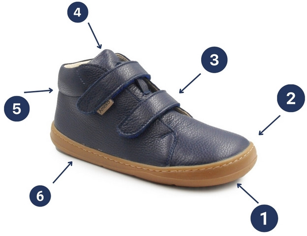 6. Elastyczna podeszwa – umożliwia pełną swobodę ruchu, wspierając naturalny rozwój stopy.