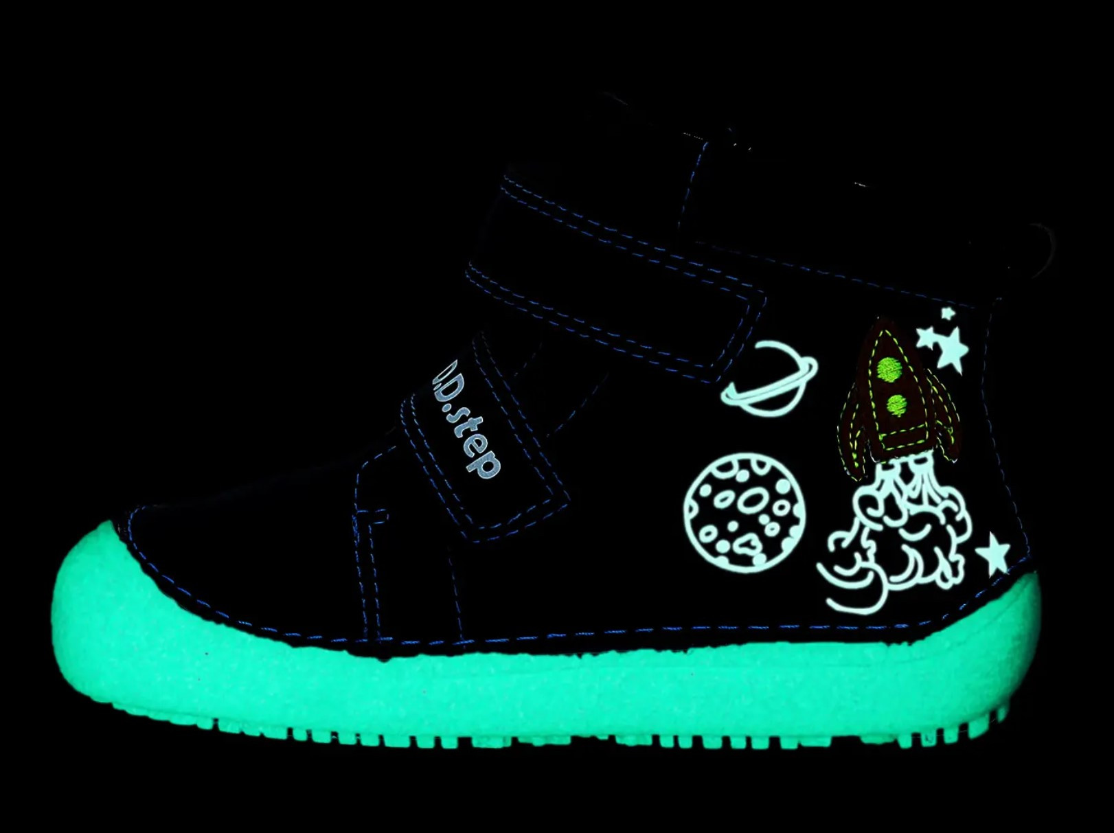 W butach DD STEP to nie tylko modny dodatek, ale także praktyczne rozwiązanie, które przypadnie do gustu zarówno dzieciom, jak i dorosłym. Dzięki specjalnej powłoce, elementy buta świecą w ciemności, tworząc dodatkowy efekt wizualny.