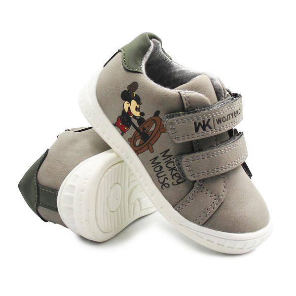 Buty chłopięce z motywem postaci Myszki Miki. Zapinane za pomocą dwóch praktycznych rzepów, które umożliwiają dopasowanie do stopy. Wnętrze buta otulone jest miękką tkaniną, która gwarantuje komfort podczas użytkowania. Podeszwa wyposażona jest w właściwości antypoślizgowe. Podwyższony zapiętek stabilizuje stopę.