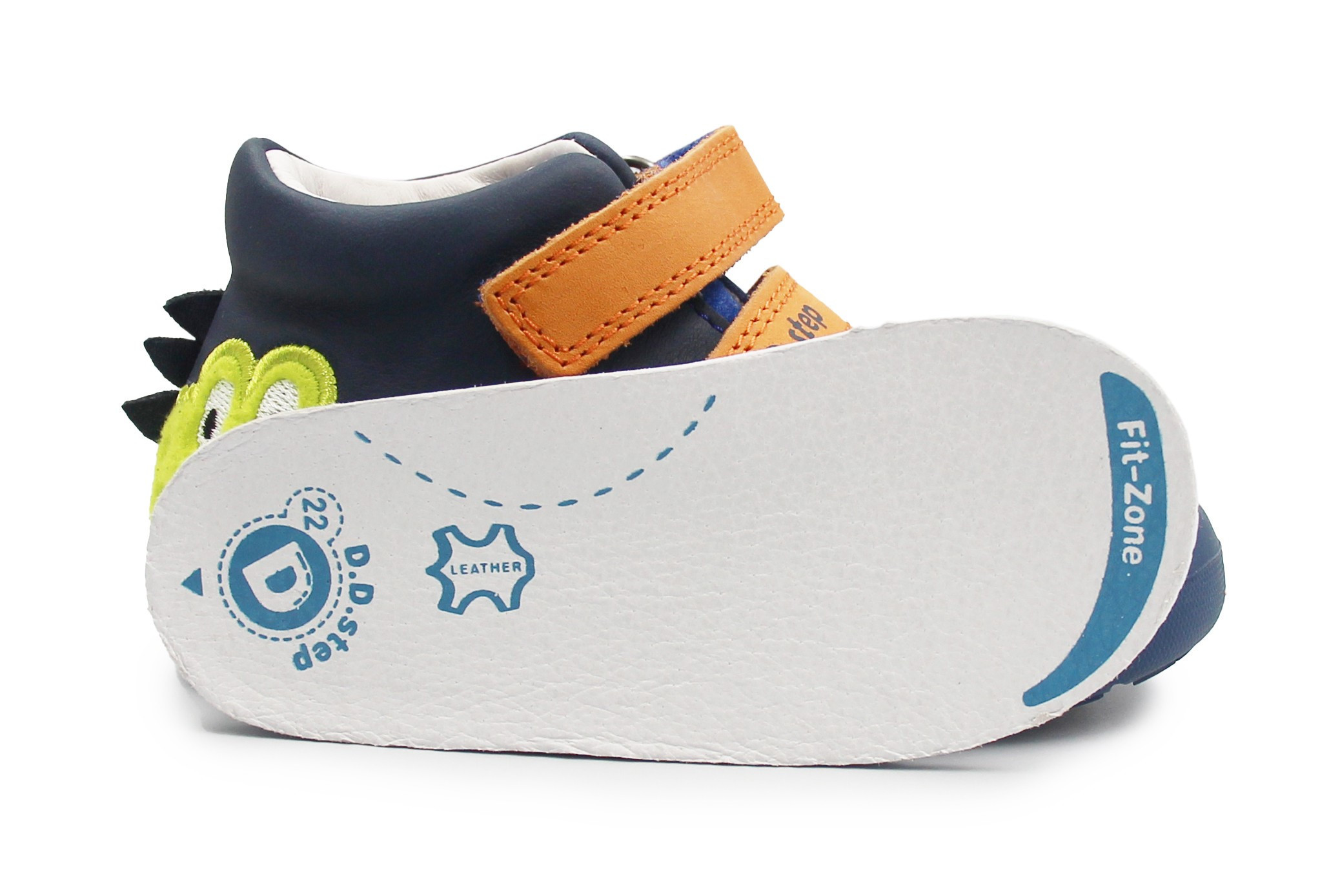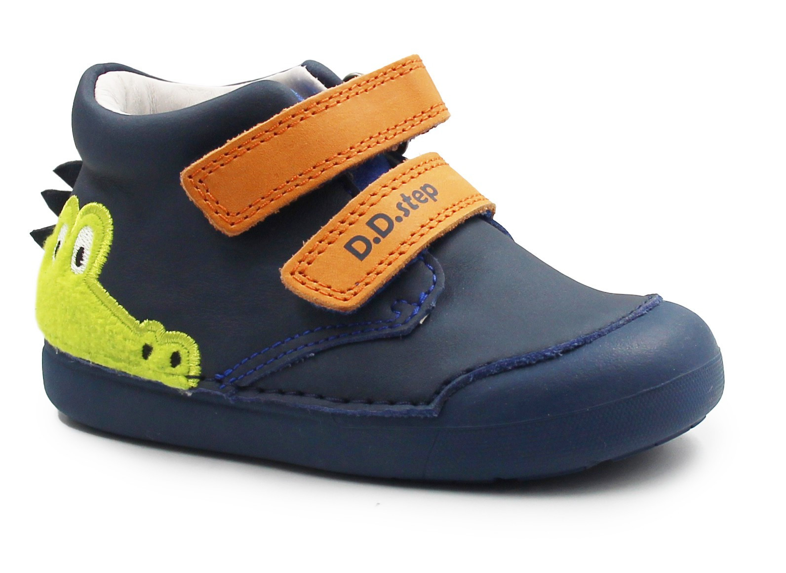 Urocze trzewiki D.D.step z niebieskim krokodylkiem są idealne dla maluchów, które stawiają pierwsze kroki. Wykonane w całości ze skóry, wyposażone w skórzaną, wyjmowaną wkładkę, zapewniają komfort i wsparcie. Dzięki regulacji na rzepy, łatwo je dopasować do stopy dziecka, a hydrofobowa i antypoślizgowa podeszwa z naturalnego kauczuku chroni przed wilgocią i zapobiegają poślizgnięciu się.