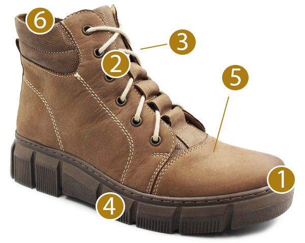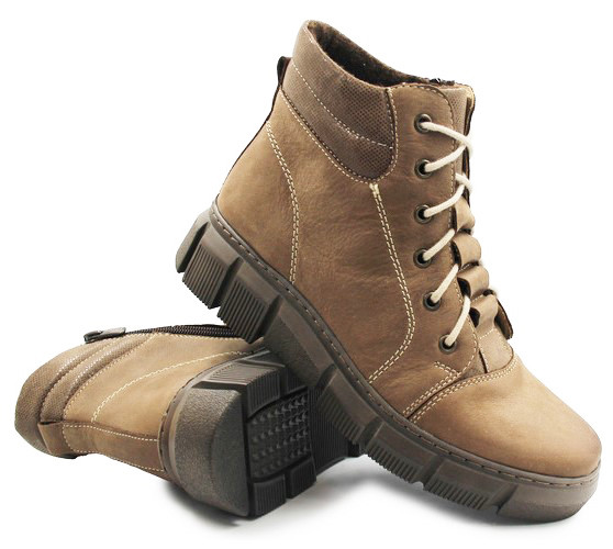 Ocieplane buty damskie, wykonane z wysokiej jakości skóry naturalnej. Zapinane za pomocą zamka błyskawicznego, a dodatkowo wyposażone w sznurowała, co pozwala na indywidualne dopasowanie obuwia do stopy.