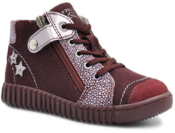 Buciki dla dziewczynki w stonowanym ciepłym odcieniu bordo połączonego z różem.