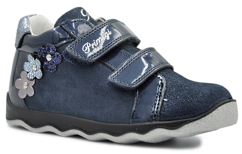 Śliczne dziewczęce trzewiki firmy PRIMIGI 4359711 w kolorze ciemnego granatu z ślicznymi kwiatuszkami