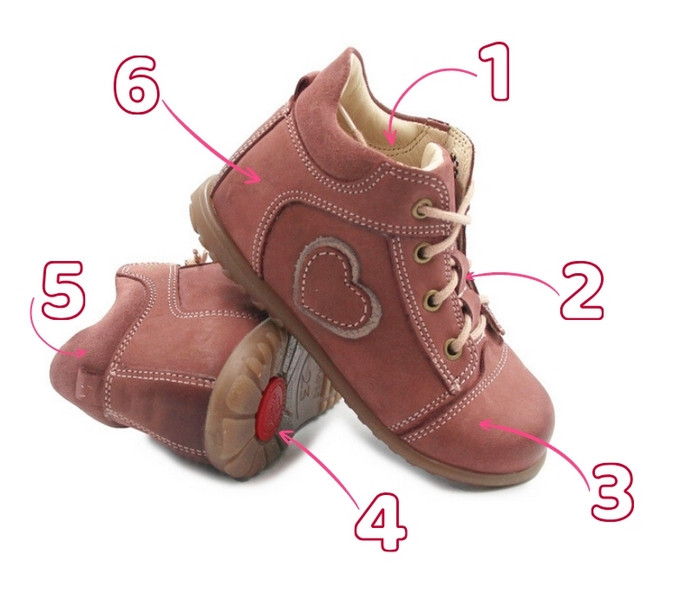 5. Usztywniony zapiętek - wzmacnia stabilizację pięty, co pomaga w utrzymaniu prawidłowej postawy i zapobiega koślawości.