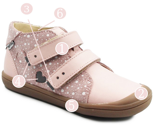 1. Wygodne zapięcie za pomocą rzepów, umożliwia dopasowanie obuwia do stopy dziecka.