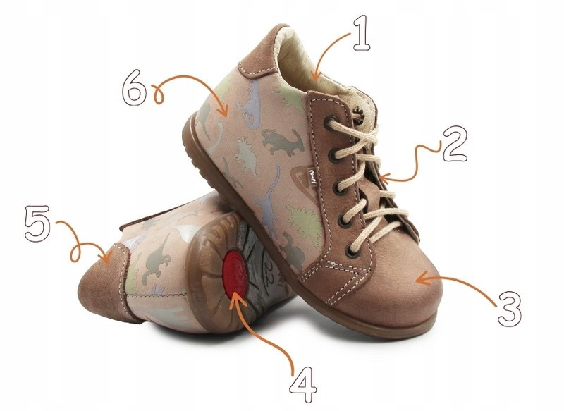 5. Usztywniony zapiętek - dobrze trzyma piętę, stabilizuje staw skokowy i zapobiega koślawieniu. To kluczowy element profilaktyki wad postawy u najmłodszych.