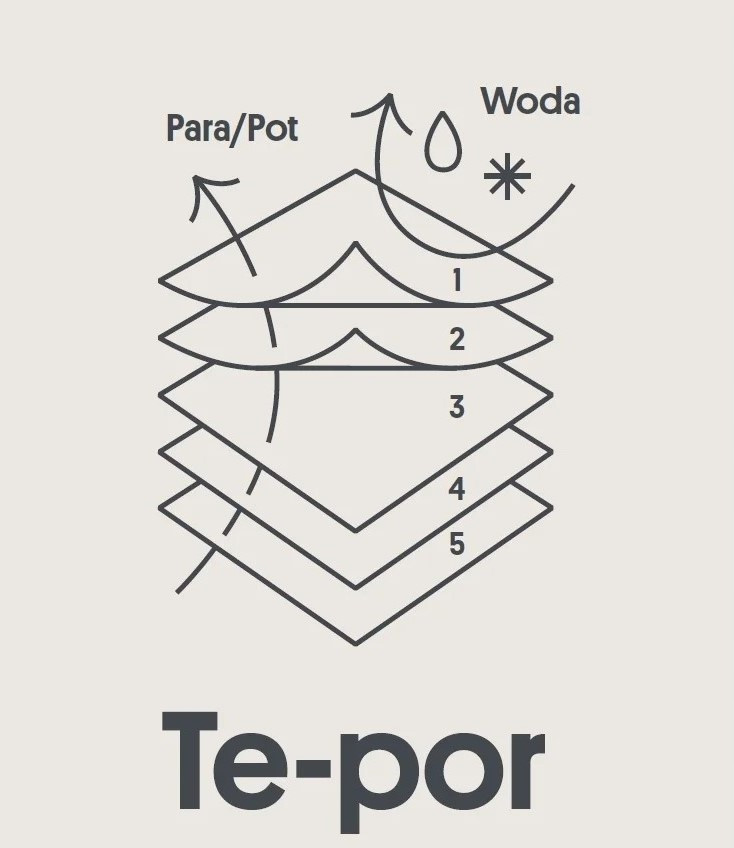 Membrana Te-Por to rodzaj membrany hydrofobowej. Membrany hydrofobowe działają na zasadzie bariery, która zapobiega przenikaniu wody do wnętrza buta. Membrana Te-Por wykonana jest z poliuretanu i posiada pory.