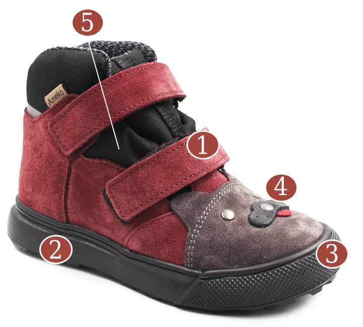 1. Zapięcie za pomocą dwóch rzepów, charakteryzuje się tym, że jest łatwe, szybkie oraz praktyczne. Daje dziecku możliwość samodzielnego założenia obuwia.