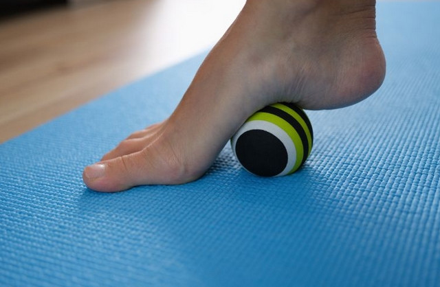 - Rolowanie piłeczki tenisowej – masuj spód stopy piłką, delikatnie dociskając ją do podłoża. Pomaga to rozluźnić mięśnie i poprawić krążenie.