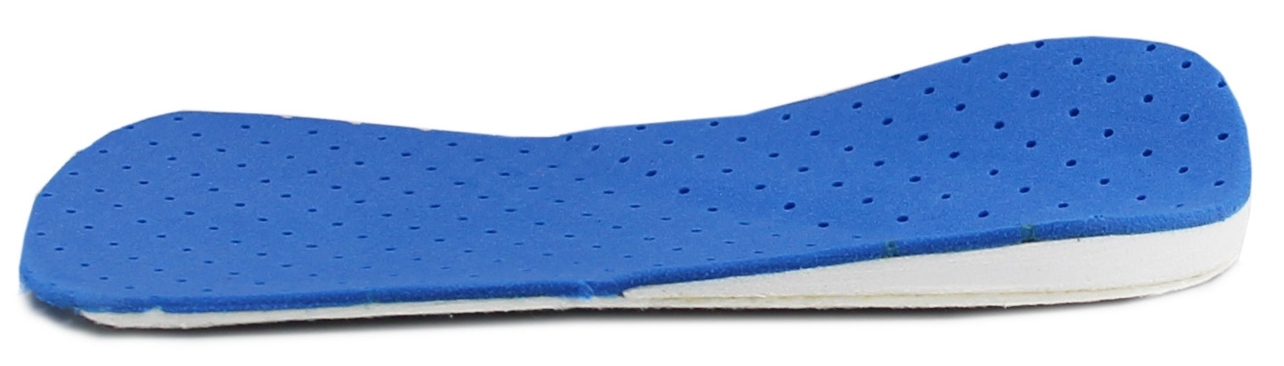 Wkładki "Correct S" posiadają wklejony specjalny klin korygujący, z podniesieniem po wewnętrznej strony (1). Tak by zmusić stopy do korekcji, a co za tym idzie całe kończyny dolne do prawidłowej postawy ciała. Dodatkowo klin zapobiega pogłębianiu się wady.