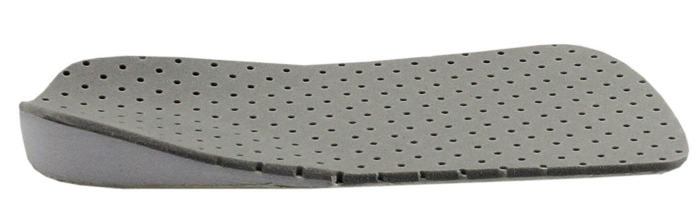 Wkładki "Correct S" posiadają wklejony specjalny klin korygujący, z podniesieniem po wewnętrznej strony (1). Tak by zmusić stopy do korekcji, a co za tym idzie całe kończyny dolne do prawidłowej postawy ciała. Dodatkowo klin zapobiega pogłębianiu się wady.